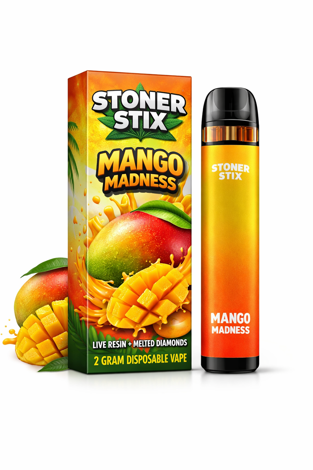 The Stoner Stix Mango Madness 2G Disposable combines bold tropical flavor, refined extraction, and dependable performance in one sleek device—making it a standout choice for users seeking a premium disposable vape with a fruit-forward profile.